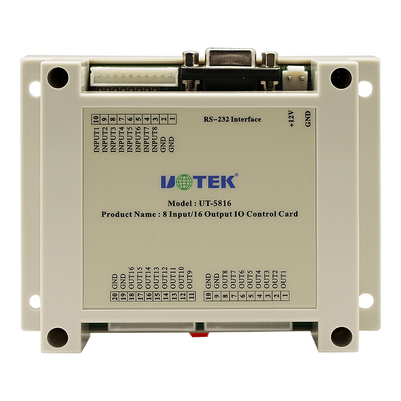 UT-5816是一款8通道干接點輸入,16通道電壓輸出模塊;輸入輸出都有對應的信號指示燈顯示狀態。工業級高標準設計,模塊可以通過一系列指令進行遠程控制,模塊和上位機是使用指令數據形式通過RS-232進行通訊。通訊波特率采用9600bps。廣泛應用于工業控制及自動化領域。